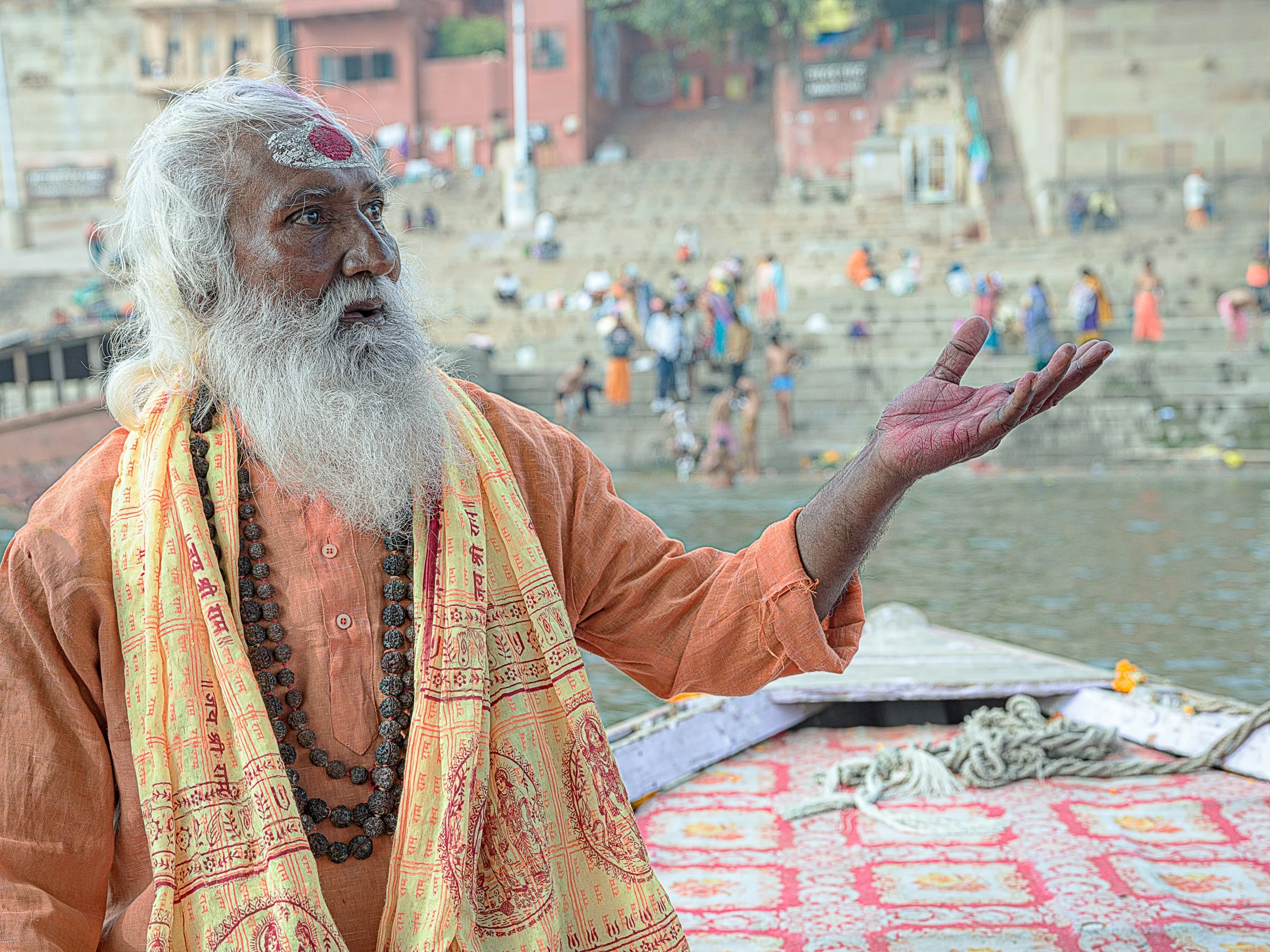 ayojan is a 40 year old sahu who was visiting varanasi before going onto the kumbh mela festival commencing in middle january 2025. thats being held at nearby prayagraj. over 400 million people are expected over the 6 weks of the festival.